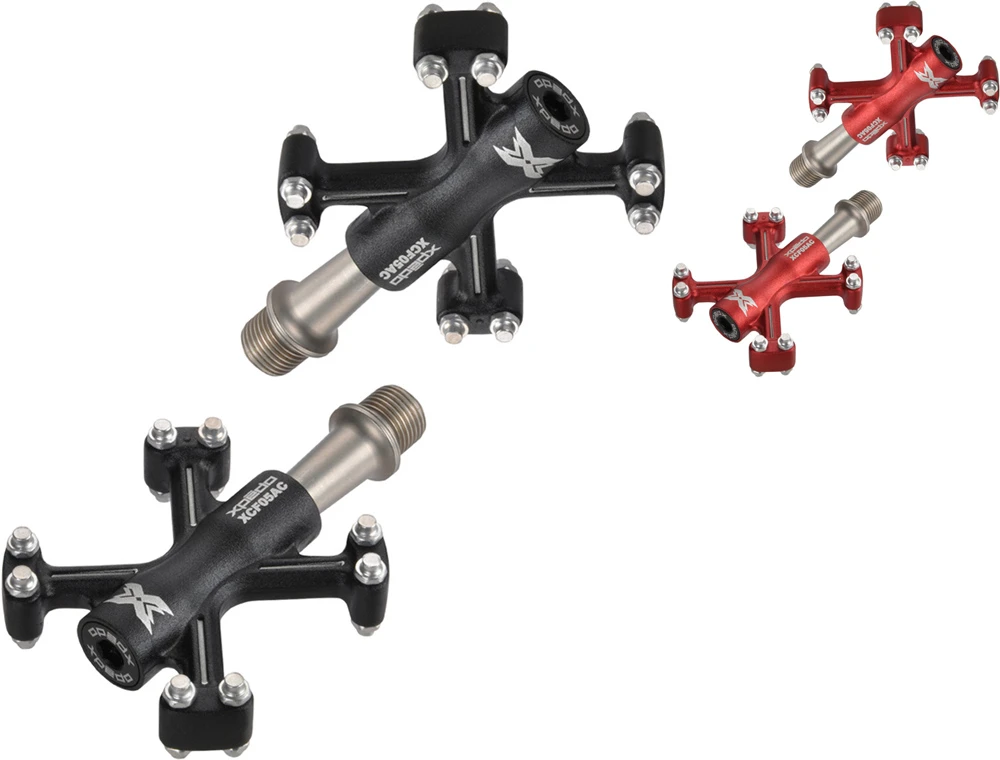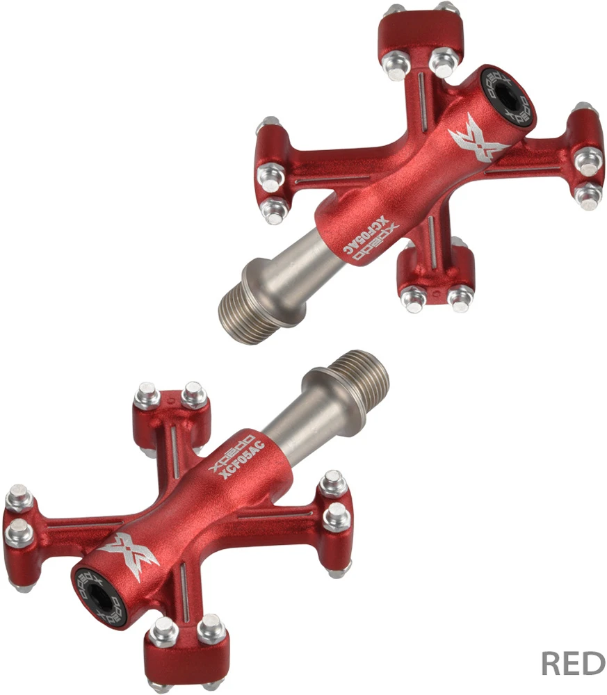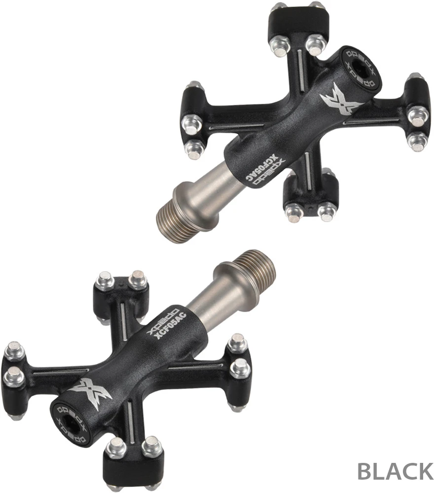 La pédale de plateforme Traverse 5 de Xpedo est extrêmement légère grâce à son corps en aluminium, mais aussi particulièrement robuste grâce à son axe en acier CroMo. 8 pins de chaque côté assurent une adhérence optimale à tout moment.